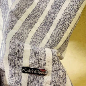 CALVIN KLEIN MEDIUM BOHO BEACH GREY WHITE STRIPPED BEACHY COASTAL INDIE BLOUSE