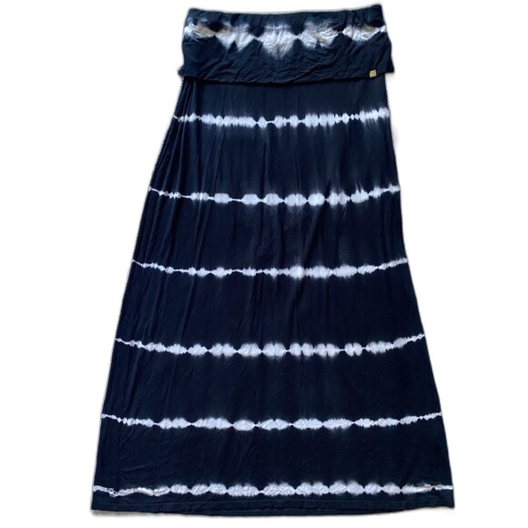CALVIN KLEIN Maxi Skirt Tie Dye Stretch Pull-On Long Boho Womens M Black White