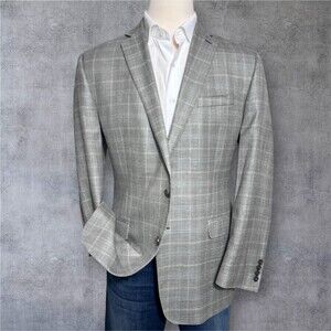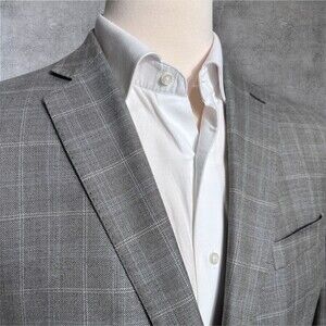 CALVIN KLEIN Men Blazer Sport Coat 2-Button Jacket 42L SILK/WOOL Gray Windowpane