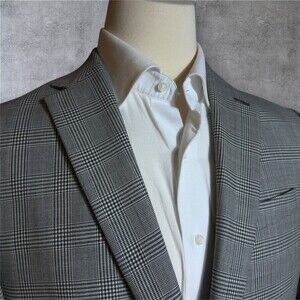 CALVIN KLEIN Mens Blazer Sport Coat Two Button Jacket 40R Gray Glen Plaid Wool