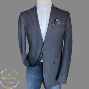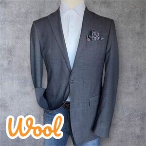CALVIN KLEIN Mens Blazer Sport Coat Two Button Jacket 42L Gray WOOL Suits