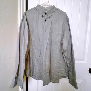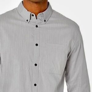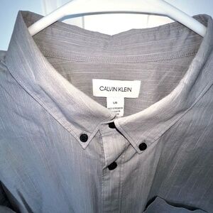 CALVIN KLEIN Mens Gray Pinstripe Button Down Stretch Casual - Size Large