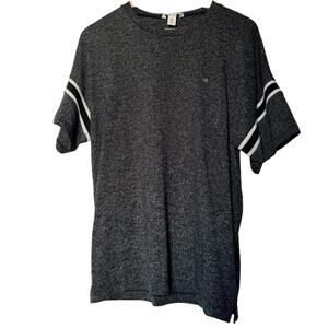 CALVIN KLEIN Men's Large Black Heather Short Sleeve Ringer Stripe Tee Shirt