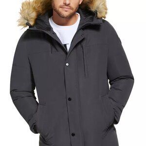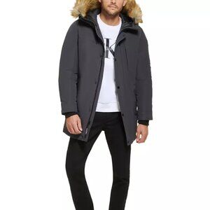 CALVIN KLEIN Men's Long Parka with Faux-Fur Lined Hood, Color: Iron, S
