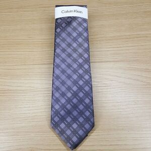 CALVIN KLEIN Mens Neck Tie Purple Plaid Grid Check Modern Classic Silk Blend