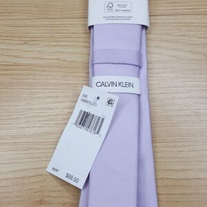 CALVIN KLEIN Mens Neck Tie Solid Lilac Slim Pointed Classic Recycled Polyester