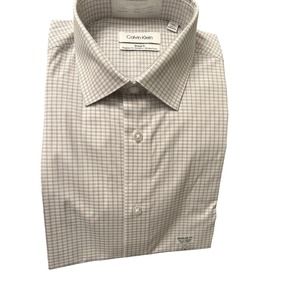 Elevate your wardrobe with the CALVIN KLEIN Men's Steel Regular Fit Stretch Wrinkle-Free Dress Shirt in size medium (15 1/2 32/33). This shirt is crafted with high-tech wrinkle-free stretch fabric that requires less ironing, allowing you to maintain a polished look effortlessly. The stretch fabric ensures comfort and easy movement, making it perfect for a day at the office or a formal event. Engineered for performance, this dress shirt features wicking properties to keep you cool and dry. Embrace a classic look with the regular fit that defines refinement. Invest in sophistication and ease with CALVIN KLEIN. The stock photo is just to show the fit