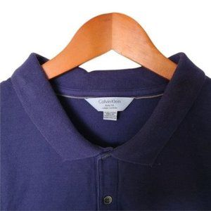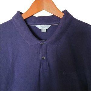 CALVIN KLEIN Men's Sz XXL Short Sleeve Polo Shirt Collared Blue Pima Cotton Body