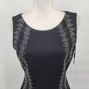 CALVIN KLEIN Mirror Embellished Bodycon Black Scuba Crepe Sleeveless Dress 6 NWT