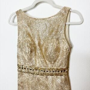 CALVIN KLEIN NWOT Gold Cream Sequin Open Back Evening Formal Maxi Gown Size 4