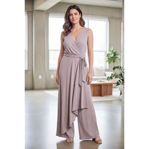 CALVIN KLEIN NWT Dusty Rose Textured Gauze Sleeveless Mock-Wrap Jumpsuit 6