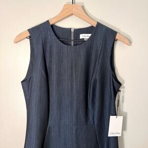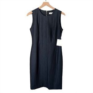 CALVIN KLEIN NWT Professional Cocktail Dark Blue Denim-like Navy Dress – Size 8