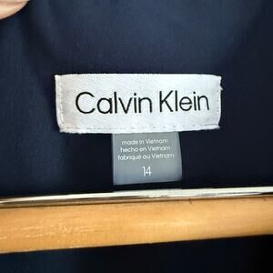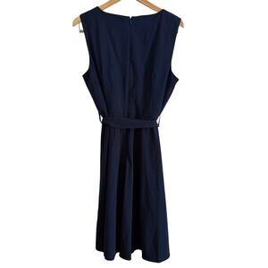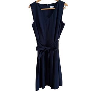 CALVIN KLEIN | Navy Blue Tie Waist A Line V Neck Sleeveless Dress | Size 14
