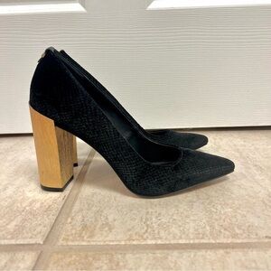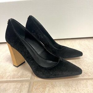 CALVIN KLEIN 'Neema' Pointy Toe Pump In Black Velvet golden heels womens size 6M