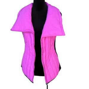 Calvin Klein performance women’s size S zip up vest. Fuchsia color with black accent.. full zipper. 2 zip pockets. Side has black knit from armpit to waist. Large collar that folds over or can be left down.