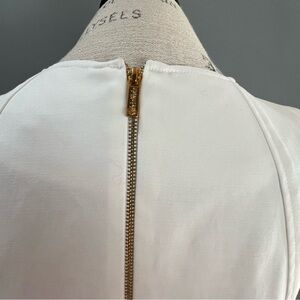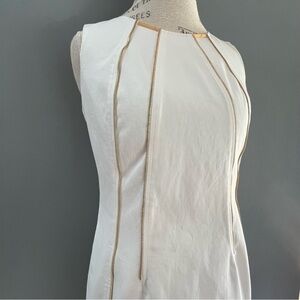 Excellent condition elegant white sleeveless dress perfect for any occasion. Gold embellishment and a gold back zipper