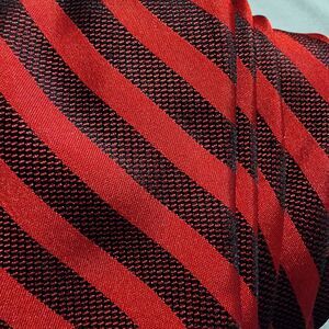 This timeless Calvin Klein silk tie features a bold red and black diagonal stripe pattern. The rich color combination and luxurious silk texture make it perfect for:
