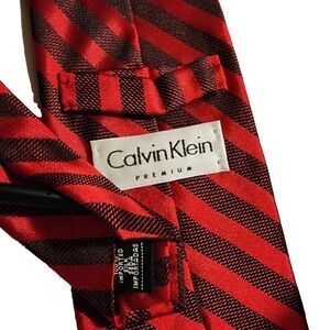 CALVIN KLEIN PREMIUM Men's Silk Tie Necktie USA Designer Striped Black Red