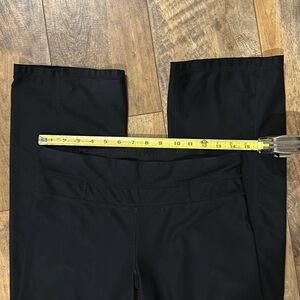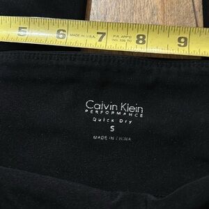 CALVIN KLEIN Performance Quick Dry Yoga Pants, Size S. Cannot locate material content tag but these are stretchy and comfortable with a jersey-like pill-resistant finish (not like a regular t-shirt). Lay-flat and inseam measurements as pictured. Solid black.