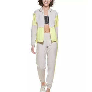 CALVIN KLEIN Performance colorblocked joggers In Light Grey/neon Green. Size MED