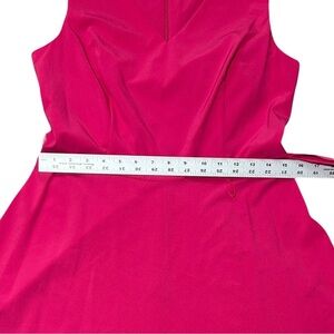 This Calvin Klein Pink Sleeveless Dress in size 6 is a stylish and versatile piece perfect for various occasions. The fit and flare style with a v-neck and knee-length tie waist adds a touch of sexiness and elegance. Made from a blend of polyester and spandex, this dress is comfortable and stretchy, making it ideal for spring, summer, and fall events.
