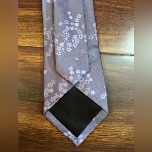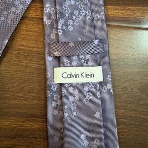 This Calvin Klein tie features a sophisticated floral pattern on a luxurious purple silk fabric. Its classic width and elegant design make it a perfect accessory for both professional and formal occasions. The subtle floral motif adds a touch of charm and refinement to any outfit.