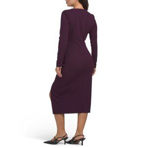 CALVIN KLEIN Purple Long Sleeve Twist Front Sheath Dress