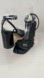 CALVIN KLEIN Quiva Strappy Patent Block Heel Sandal In Black NEW