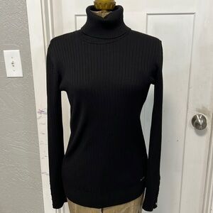Calvin Klein black ribbed turtle neck long sleeved top size small in gently pre owned condition Check out all pics and comment below with any questions