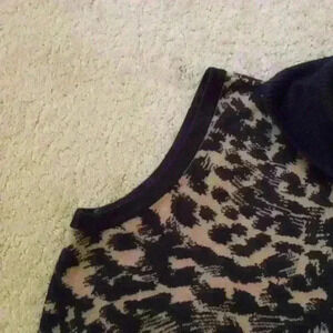 CALVIN KLEIN SLEEVELESS ANIMAL PRINT SWEATER DRESS WITH MOCK/TURTLENECK SIZE MEDIUM. THIS HAS BEEN VERY GENTLY WORN AND IS CLEAN WITH NO TEARS. DRESS IS NOT LINED. 100% ACRYLIC MATERIAL. DRY CLEAN ONLY. PLEASE SEE PHOTOS FOR MEASUREMENTS. NON SMOKING NON PET HOME.