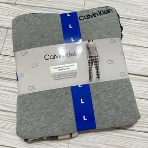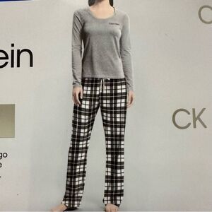 CALVIN KLEIN SOFT STRETCH GINGHAM LONG SLEEVE CREWNECK TOP AND PANT PJ SET LARGE