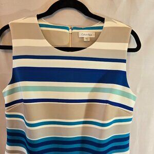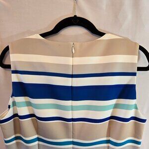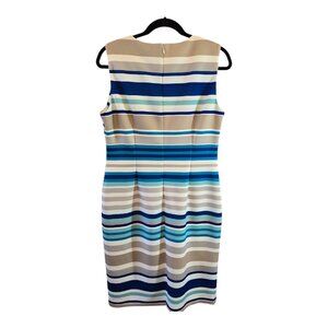 CALVIN KLEIN STRIPED SCUBA SHEATH DRESS SIZE 12 BLUE TAN IVORY TEAL NWOT