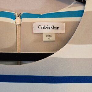 NAME: CALVIN KLEIN STRIPED SCUBA SHEATH DRESS SIZE 12 VERSATILE TO DRESS UP OR DOWN HIDDEN BACK ZIPPER WITH HOOK AND EYE CLOSURE CAREER PROFESSIONAL EVENING NWOT