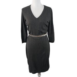 CALVIN KLEIN! STUNNING CHARCOAL GRAY SHEATH STYLE V-NECK SWEATER DRESS,! SZ M
