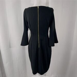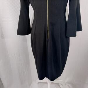 From Calvin Klein is this awesome chic dress in rich, saturated black! It features dramatic bell sleeves, and sheath style that loosely follows the body line! Back zipper in gold, Size 8, stunning! No care tag available; it is probably a poly blend, and definitely dry clean. Excellent! Superb EUC Condition! **ABSOLUTELY GUARANTEED CONDITION: EUC MINTY-EXCELLENT TO LIKE-NEW, by Lily @HauteClub!***