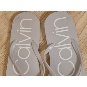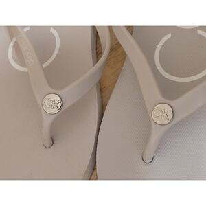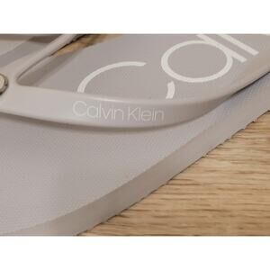 CALVIN KLEIN Salmas Size 8 Light Gray with CK Metal Logo Women Flip Flops