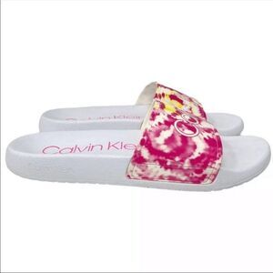 CALVIN KLEIN Sandals Womens 8 Pink Tie Dye Slides Cilla Colorful Resortwear Fun