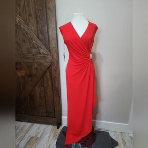 CALVIN KLEIN Scuba-Crepe Faux-Wrap Gown Embellished NWT size 4 red
