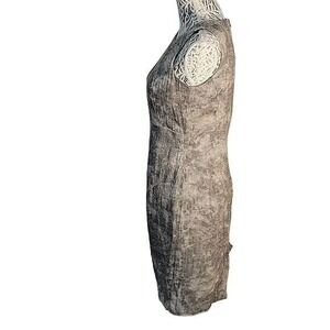 Keywords: sheath dress, sleeveless dress, neutral dress, gray dress, beige dress, textured dress, career dress, cocktail dress, work dress, midi dress, classic dress, contemporary dress