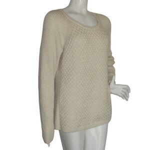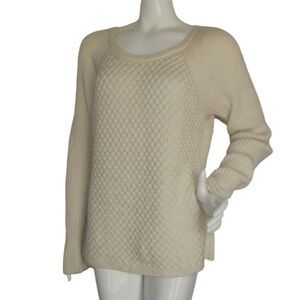 CALVIN KLEIN Sweater, L, Mixed texture knit, Long sleeve, Cream, Crew neck