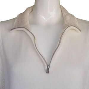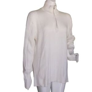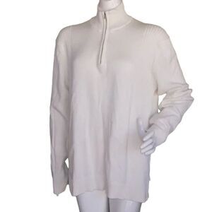 CALVIN KLEIN Sweater, XL, White, Pull Over, Quarter Zip, Long sleeves, Cotton