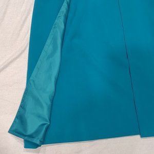 CALVIN KLEIN, TEAL, SLEEVELESS DRESS, PLEATED NECKLINE, OVERLAPPING FRONT SKIRT PANELS, WOMEN'S SIZE 6, INVISIBLE BACK ZIPPER, LINED, NO STRETCH SO CHECK MEASUREMENTS CAREFULLY!