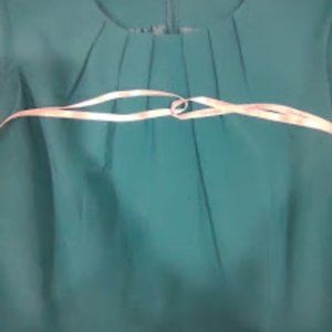 CALVIN KLEIN TEAL SLEEVELESS DRESS, PLEATED NECKLINE, OVERLAPPING SKIRT PANELS 6