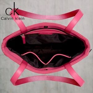 CALVIN KLEIN Tessa Neoprene Pocketed Top Snap Tote in Barbie Pink NWT