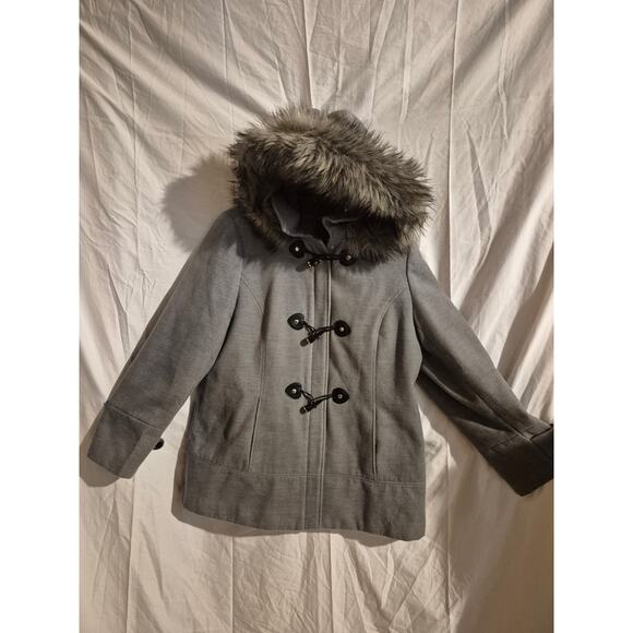 CALVIN KLEIN Toggle Coat with Removable Faux Fur Hood Size M /L.