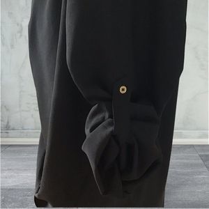 CALVIN KLEIN Top Blouson Drape Black Zipper Shoulders Long Sleeve/Button up NS