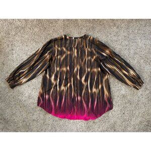 CALVIN KLEIN Tunic Blouse Top Popover Long Sleeve Roll Tab Ombre Pink Casual 2X
