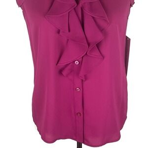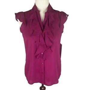 CALVIN KLEIN V-NECK RUFFLE CAP SLEEVE BLOUSE IN MULBERRY NWT WOMEN'S SIZE PXS