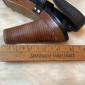 Fun shoes! There is some minor scratching on the shoes “wood” area. There is some peeling on the footbed. Please refer to pictures.