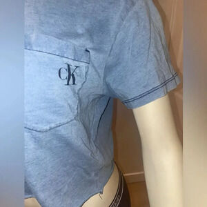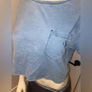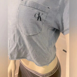 CALVIN KLEIN WASHRD BABY BLUE CROPPED LOGO POCKET TEE SIZE MEDIUM